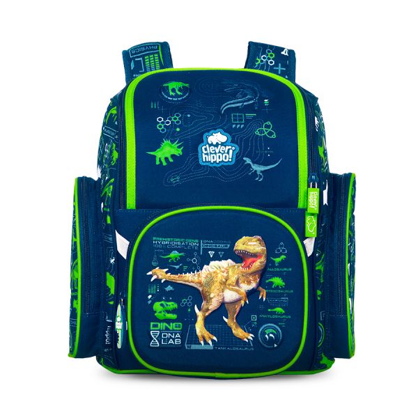 Mẫu ba lô chống gù chủ đề khủng long với tông màu xanh dương mạnh mẽ, phối hợp cùng sắc xanh lá độc đáo, tạo nên một siêu phẩm cực HOT của nhà Clever Hippo.